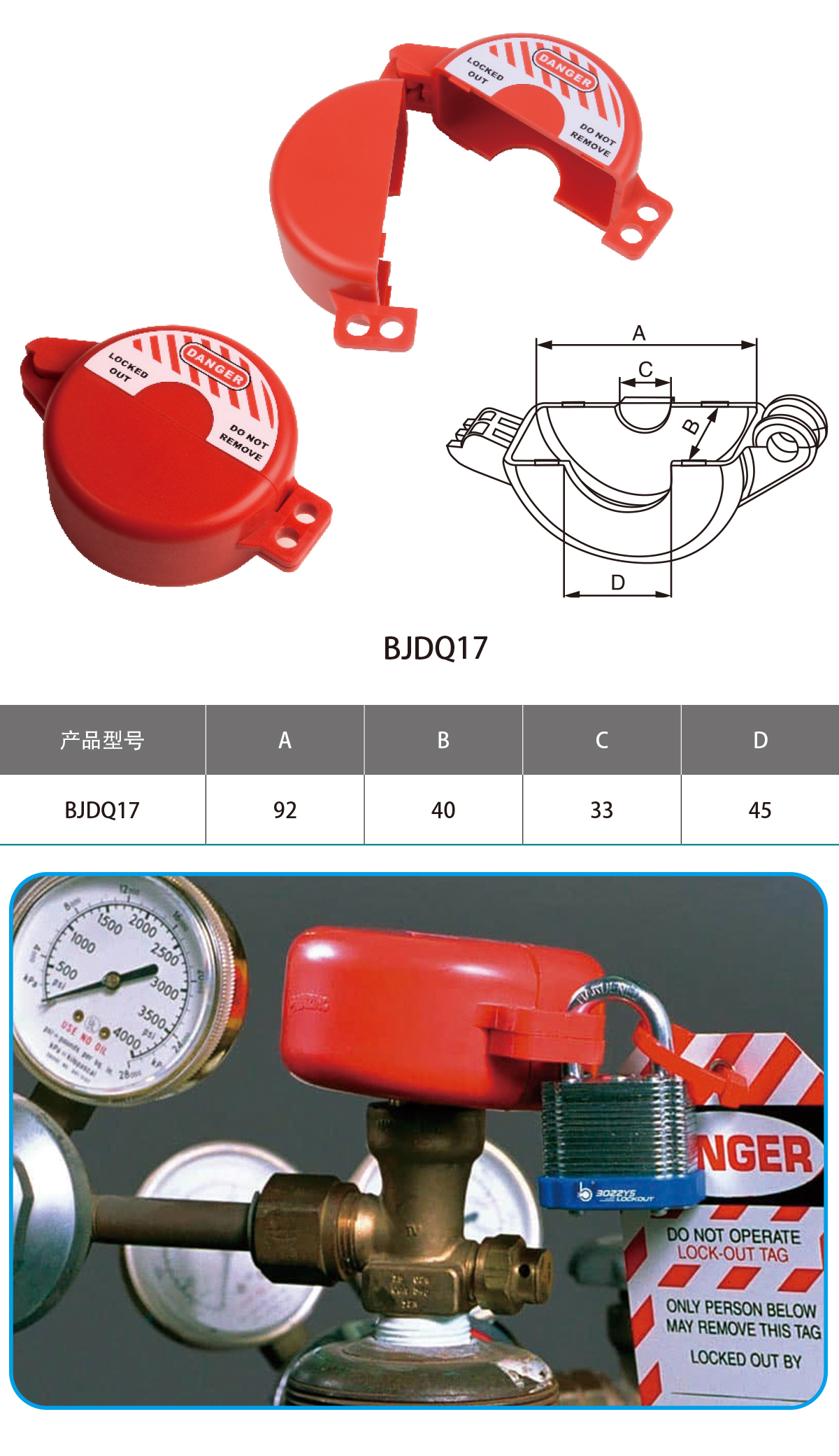 ◎ 由工程塑料ABS制成,無任何金屬成分,防火花,耐腐蝕。◎ 用于鎖定儲罐,包括叉車上的丙烷罐和獨立式丙烷儲罐,避免他人擅自操作閥桿。◎ 用于空間有限的場合。◎ 可搭配掛鎖和搭扣一起使用,實現(xiàn)共同管理。
