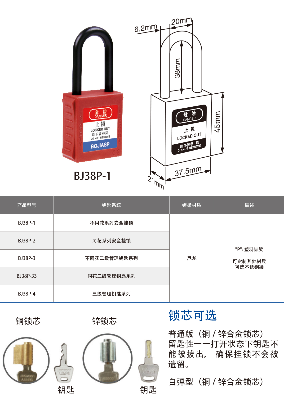 BJ38P-1 弧形鎖殼工程安全掛鎖 鎖梁高38mm