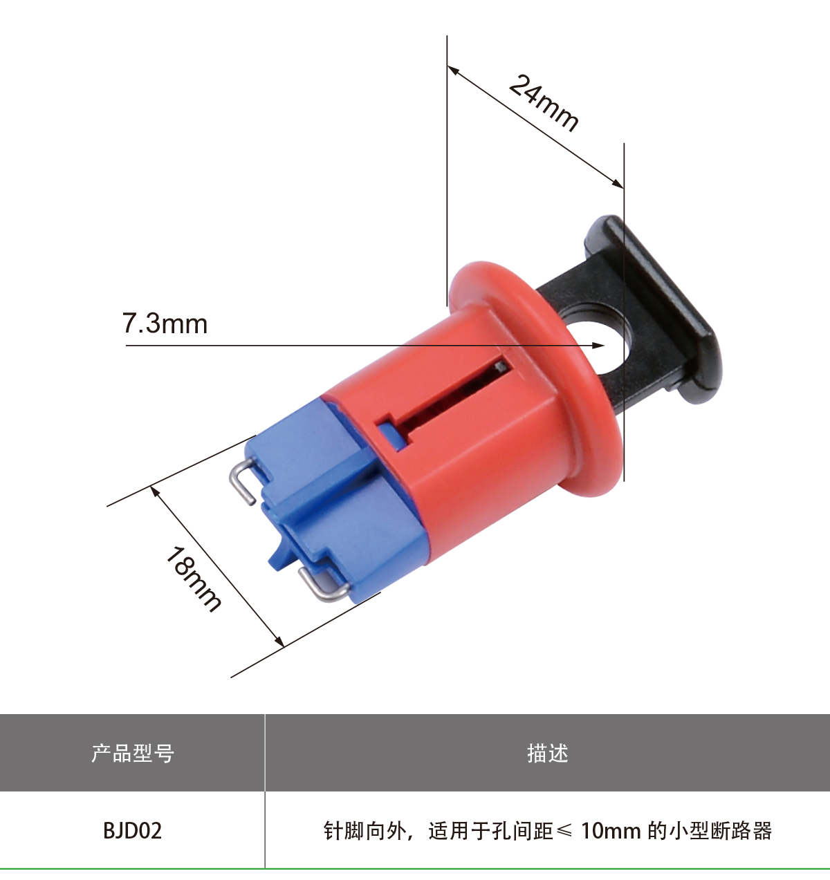 ◎ 通用于歐洲和亞洲設(shè)備,用于鎖定小型斷路器。