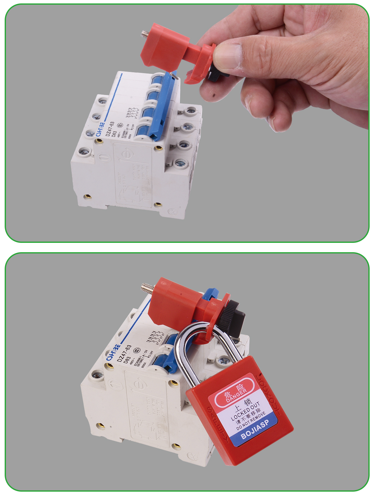 ◎ 通用于歐洲和亞洲設(shè)備,用于鎖定小型斷路器。
