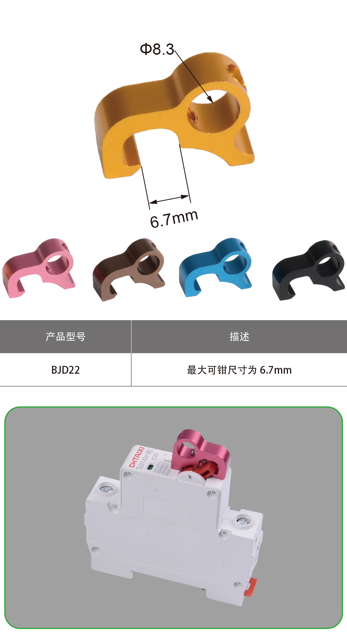 ◎ 由鋁合金制成,表面氧化處理,更耐腐蝕。◎ 適用于歐洲、亞洲大部分現(xiàn)有型號(hào)的小型短路器。◎ 使用時(shí)應(yīng)配合小型一字螺絲刀使用。◎ 鎖孔直徑8.3mm。◎ 適用于單極和多極小型斷路器。