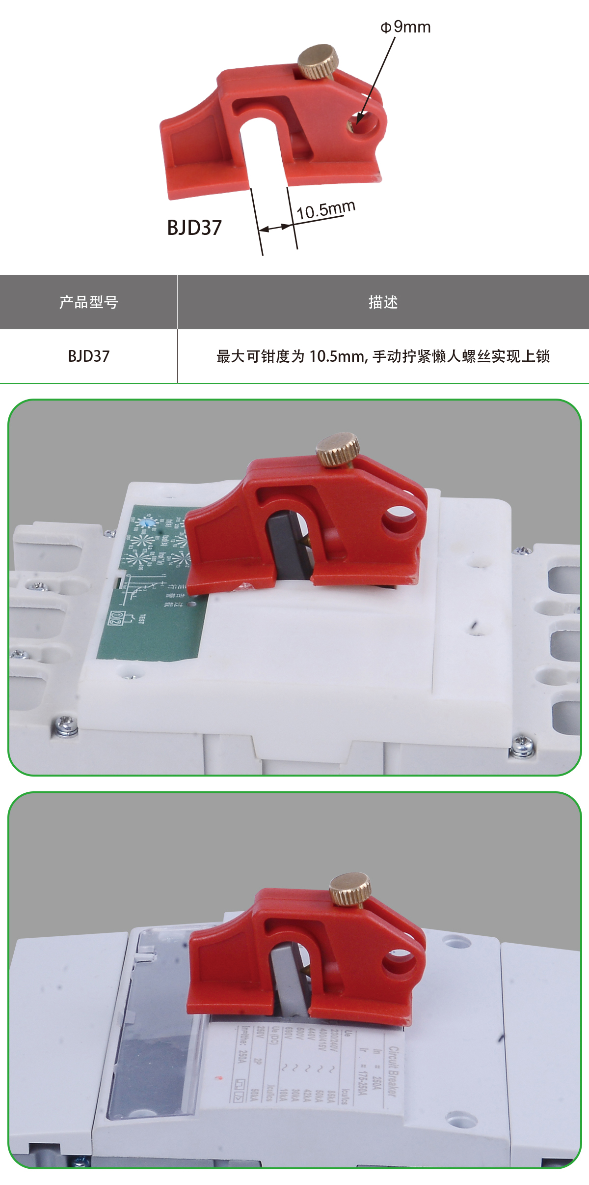 ◎ 由堅(jiān)固耐用的增強(qiáng)尼龍制成。◎ 適用于中型斷路器。◎ 鎖孔直徑9mm。