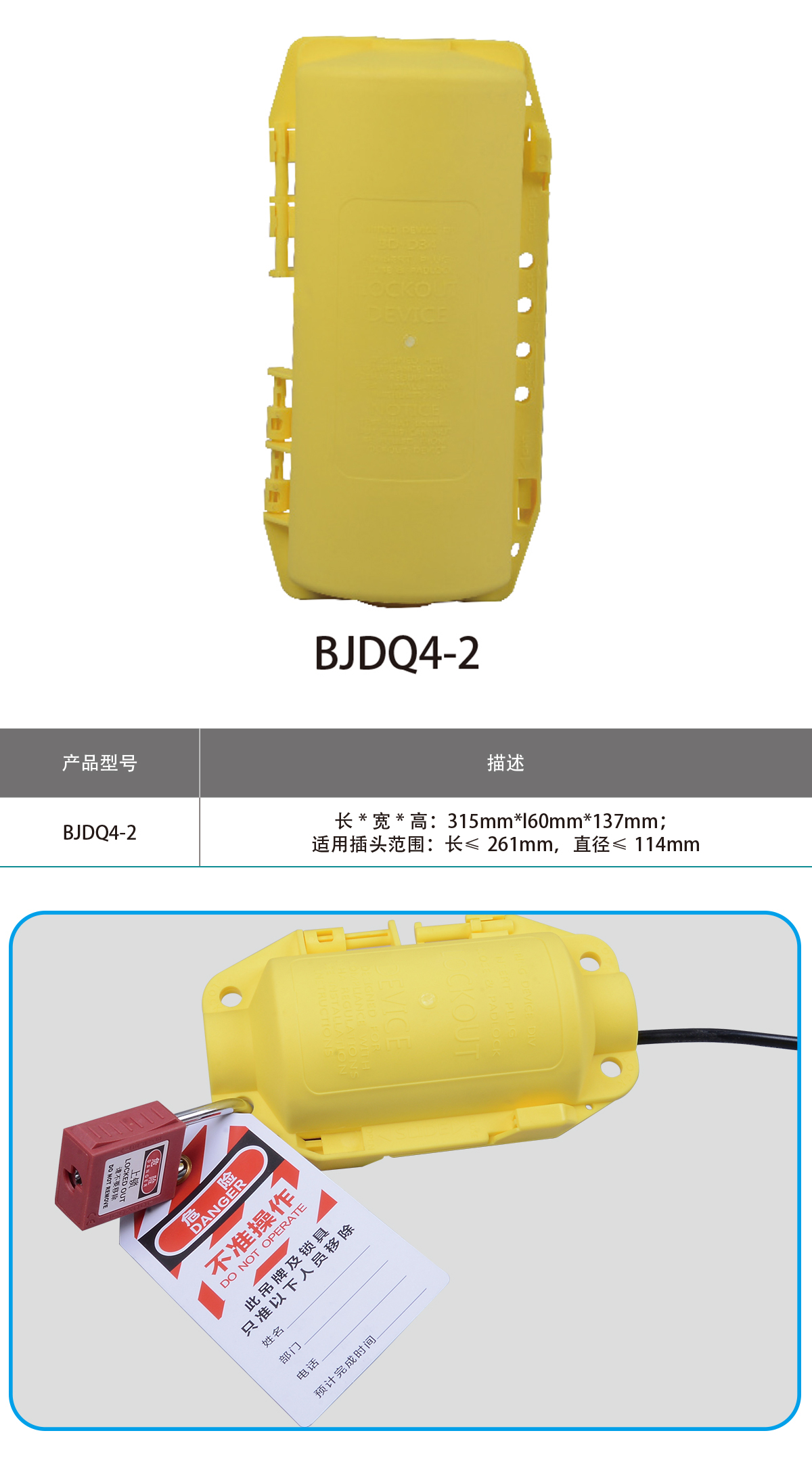 ◎ 鎖身由堅固耐用的聚丙烯(pp)材料制成 ◎ 用于鎖住工業(yè)插頭,以防誤用誤觸; ◎ 可實現(xiàn)4把安全掛鎖同時上鎖;◎ 可定制不同顏色。